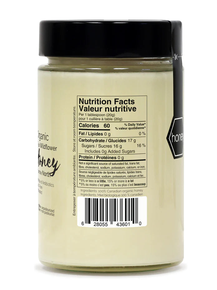 This premium raw organic honey comes straight from the beehives of Alberta's vast Northern wilds. Raw honey retains all its healthful properties; rich in nutrients with enzymes, antioxidants, and amino acids. In its natural form, this honey contains beeswax, pollen, and propolis.